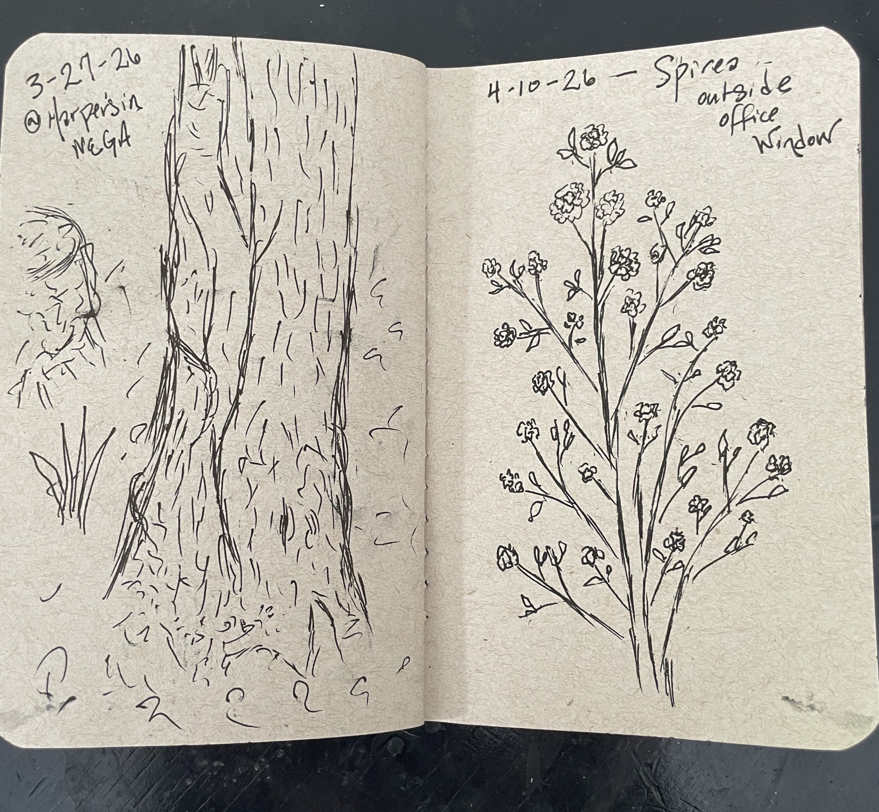 For example, this morning I had a meeting first thing, and then I had to work, but I took 10 minutes after my meeting, right before work, to make a drawing in my drawing journal, an activity that was both inspiring and relaxing. Just the act of sketching the spirea outside my office window gave me the fuel to accomplish my other tasks.